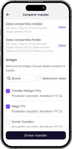 Comparte y recibe transfers de manera rápida y segura con otras empresas de transporte. Ahorra tiempo y optimiza tus servicios con el sistema de “Amigos.”