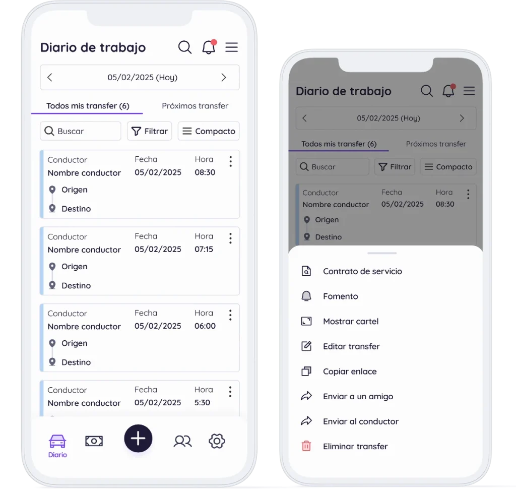 Accede a todas tus reservas diarias en un solo vistazo, con detalles organizados para que sepas quién realiza cada transfer, quién fue el proveedor, y el recorrido del viaje.
