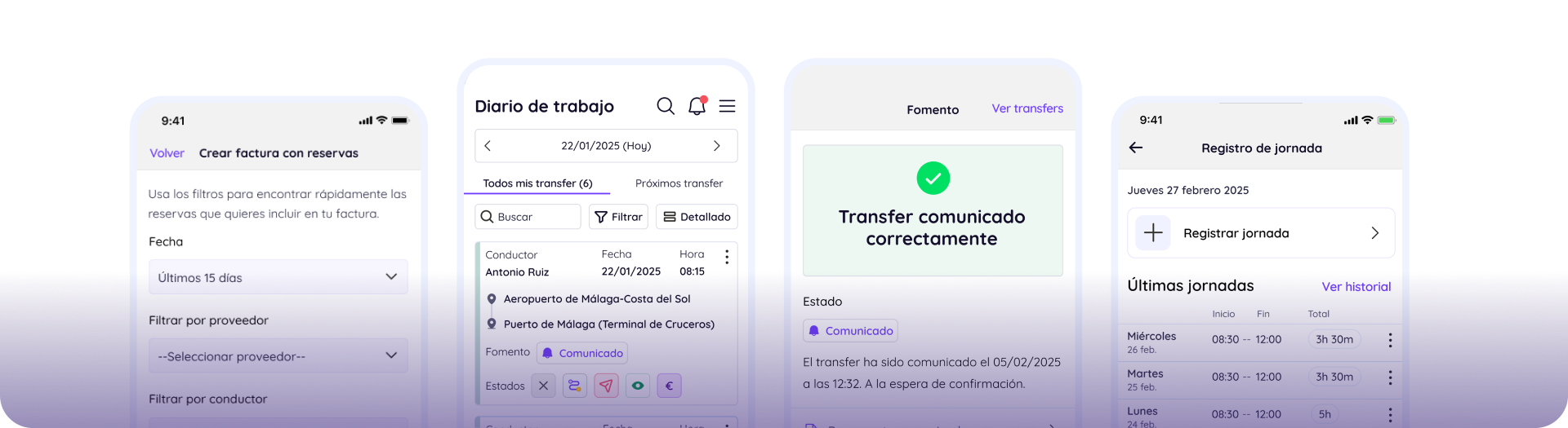 La app es súper fácil de usar y agiliza muchísimo la gestión de reservas y facturación. Comunico mis viajes a Fomento de forma rápida. Muy recomendada.